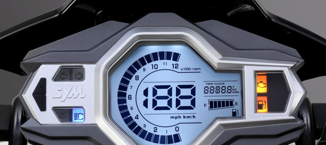 Le tableau de bord s’enrichit d’un écran numérique affichant une horloge, un compte-tours, tension de batterie et un totaliseur journalier.