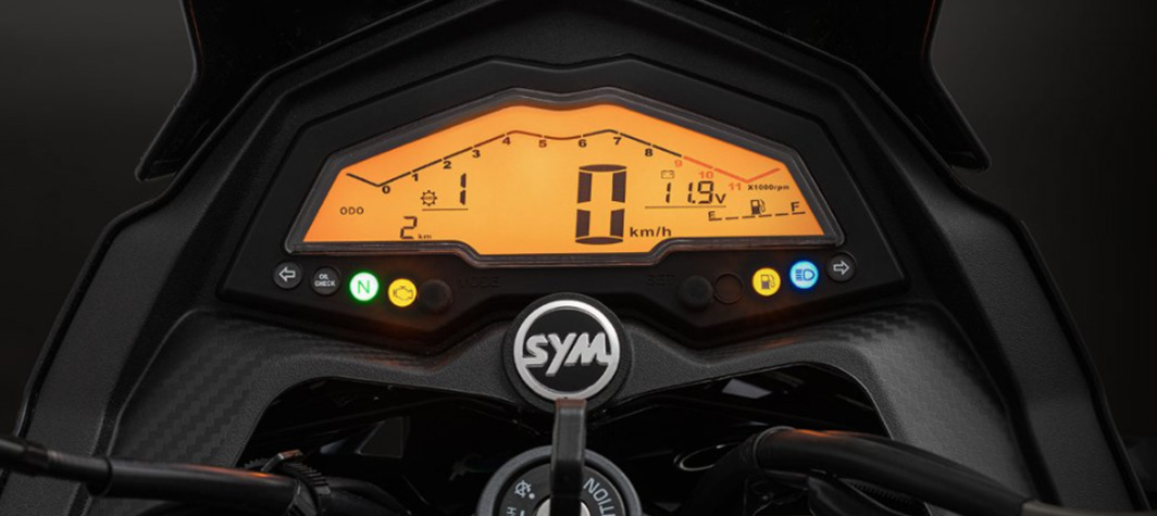 Le tableau de bord LCD multi-fonctions se compose d’un compteur de vitesse, compte-tours, voltmètre, témoin de rapport engagé, jauge à essence, des témoins de contrôle usuels et d’une prise USB.