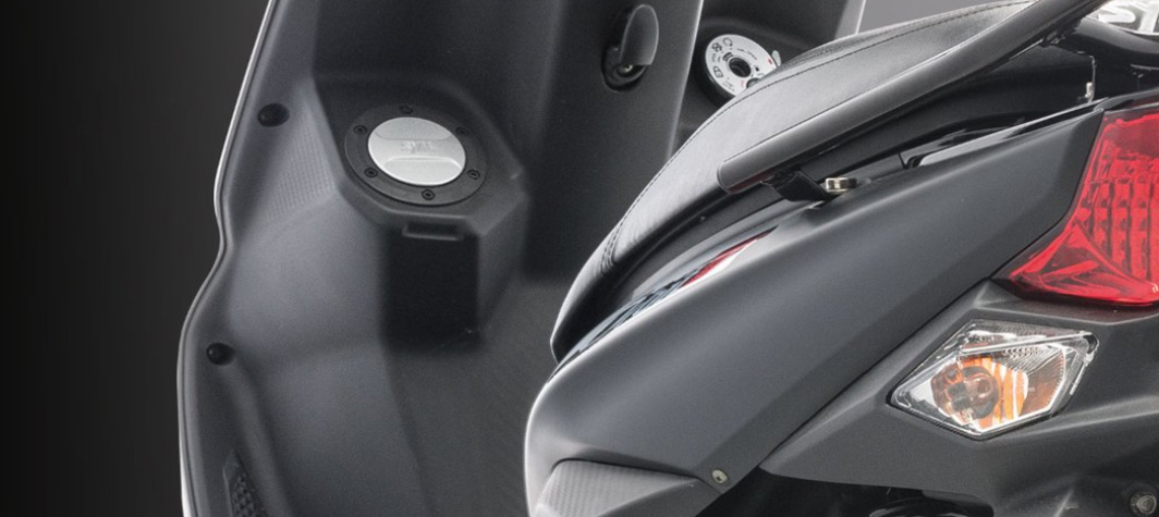 L’espace volumineux prévu sous la selle permet de ranger toutes vos affaires personnelles ainsi qu’un casque jet.